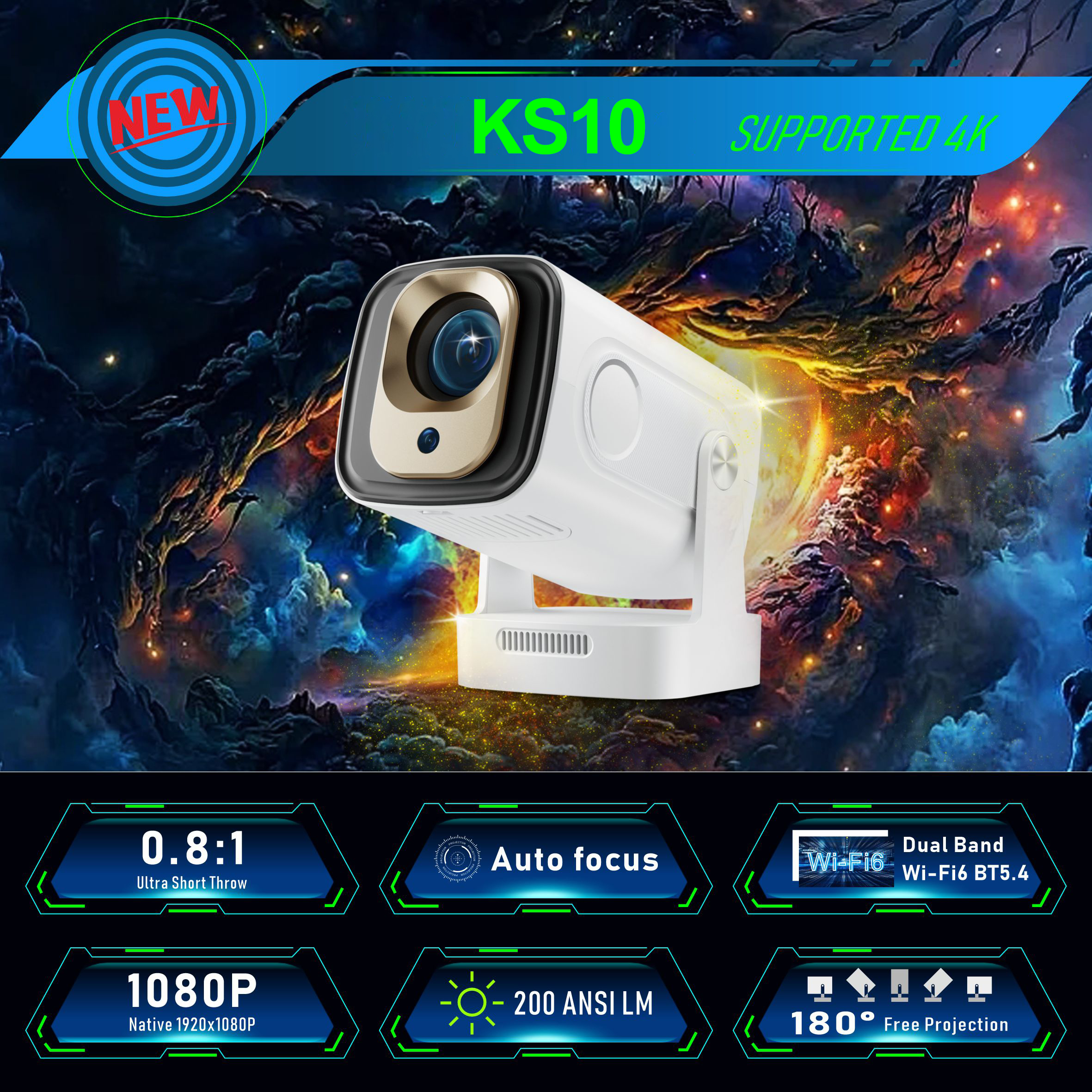 Experience top-tier home theater performance with this Portable Smart LED Projector. Featuring a native resolution of 1080P, 200 ANSI lumens brightness, and Android 11 OS for seamless streaming. Certified by RoHS and CE, ensuring compliance with EU safety standards and providing market access assurance.